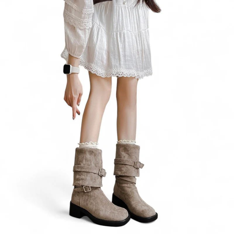 Britta - Botte haute en Daim à Ourlet – Botte pour le Quotidien, Raffinée et Pratique au Quotidien