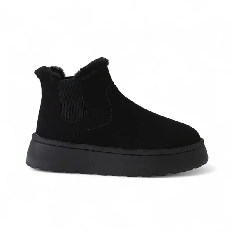 Clea - Bottes Basses Fourrées en Daim Serrage Élastique